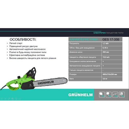 Характеристики электропилы Grunhelm 17-35B: