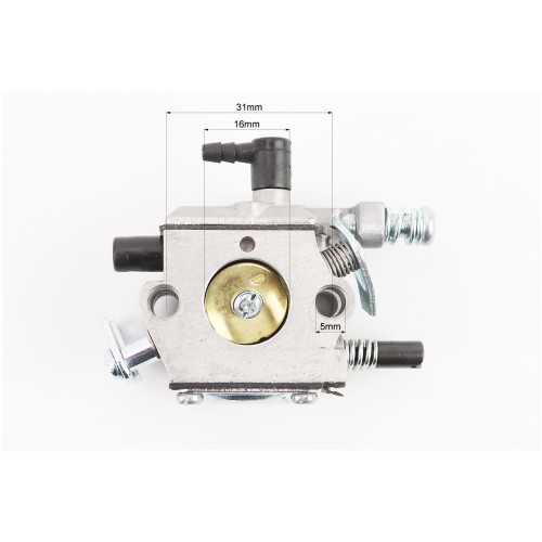 Карбюратор китайской бензопилы 4500/5200, пластиковые штуцера