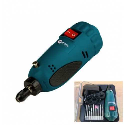 Гравер Сталь МГ 1820 – очень многофункциональный инструмент! С его помощью Вы сможете шлифовать, резать, гравировать, сверлить и многое другое. Небольшой вес и маленькие размеры – главное преимущество данной шлифмашинки. Не смотря на свои размеры, гравёр вместил в себя достаточно мощный 18Вт электромотор, который способен поддерживать 15000 об/мин, что гарантирует точную работу с инструментом. Гравер Сталь МГ 1820 комплектуется кейсом с набором из 20 предметов.