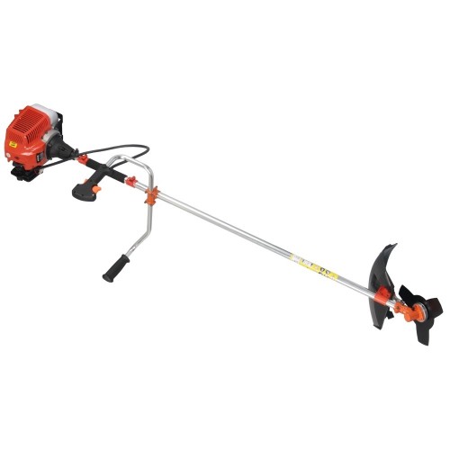 Наплечный ремень, шпуля с леской, 3-зубчатый нож, набор ключей, защитный кожух, бачок для приготовления топливной смеси, инструкция, гарантия.
