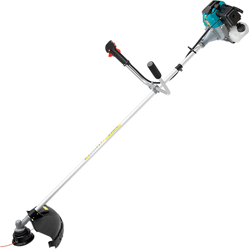 Наплечный ремень, шпуля с леской, 3-зубчатый нож, набор ключей, защитный кожух, бачок для приготовления топливной смеси, инструкция, гарантия.