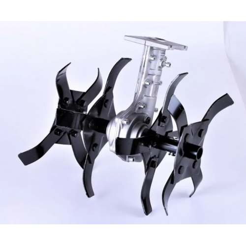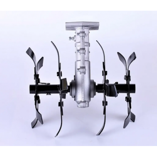 Насадка-культиватор 26*9T — насадка для бензокосы для разрыхления почвы. Насадка укомплектована вращающимися фрезами (ножами), крепится на триммере. Насадка-культиватор для бензокосы BK (26*9T) подходит к большинству мотокос китайского производителя.