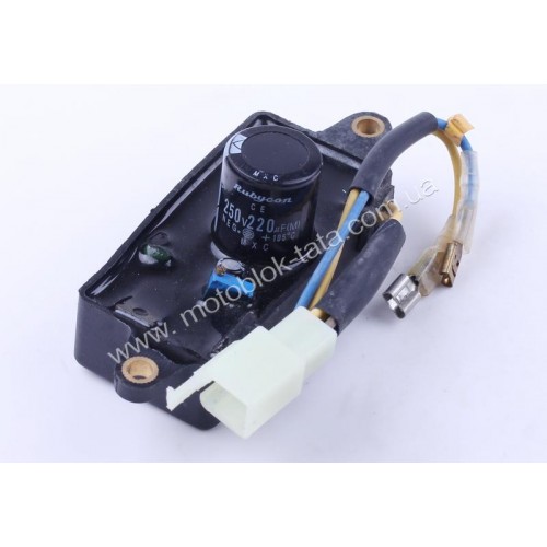 Однофазное реле напряжения для генератора мощностью 2-3,5 кВт – запчасть, контролирующая напряжение, вырабатываемое агрегатом, в заданных пределах. Благодаря этому сохраняется оптимальная работа генератора.