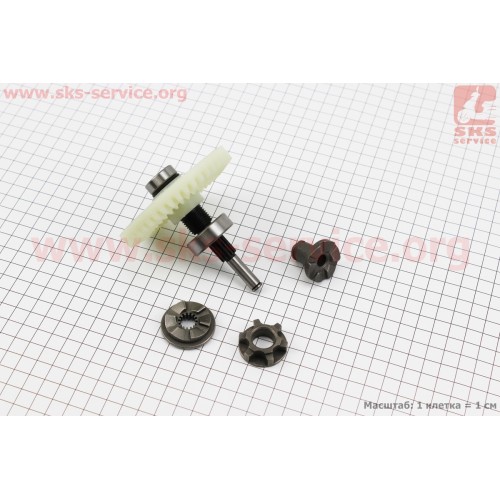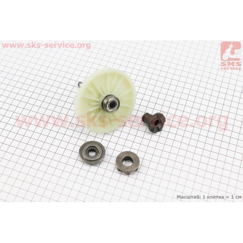 Шестерня привода ведомаяс валом в сборе (D=86,6мм, d1=10мм, d2=20мм, H=37мм, Z=39), пластик