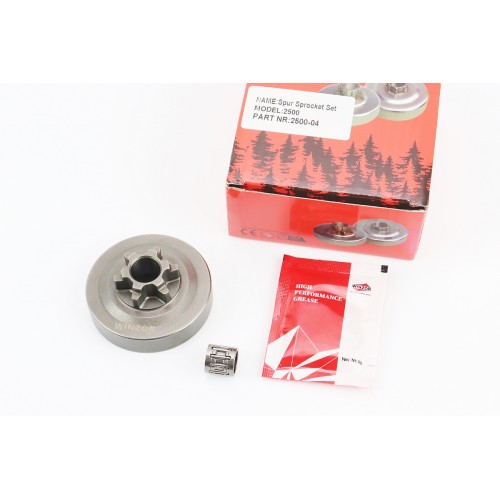 Тарелка сцепления "звезда" 3/8-6 китайской бензопилы 2500 + подшипник + смазка