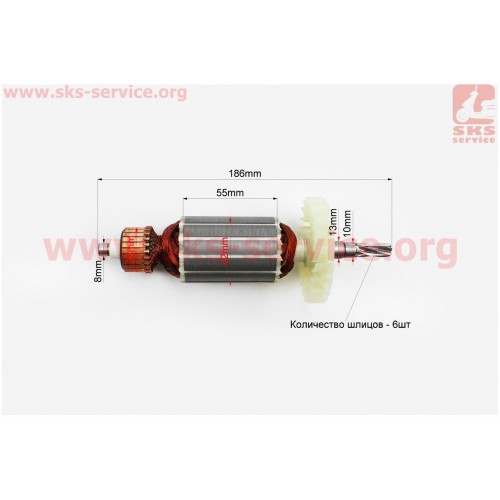 Якорь (Dжелеза=42мм, Lжелеза=55мм, Dколектора=28мм, L=186мм, Z=6 наклон зубов вправо)