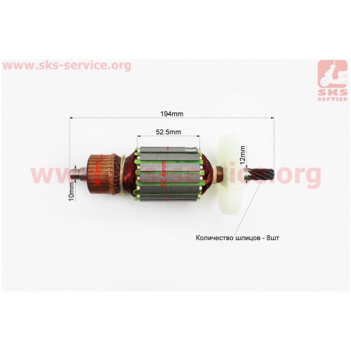 Якорь (Dжелеза=52мм, Lжелеза=52,5мм, Dколектора=36,7мм, L=194мм, Z=8 наклон зубов вправо) Craft, Темп