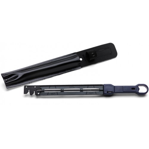 Заточной комплект для кустореза позволяет правильно и быстро затачивать диски. В набор входит державка, а также шаблон для заточки зубьев дисков и правильной их разводки.